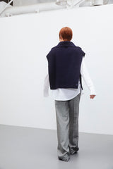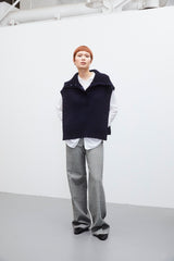 Chunky rib knit vest with fabric covered pressbuttons. Made from 100% supersoft merino wool.
