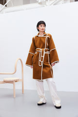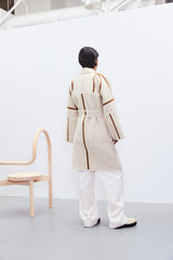 Versatile loose fitted jacket in brushed Norwegian lambswool (28 My) woven at Røros Tweed. Pattern design in collaboration with designer Kristine Five Melvær.