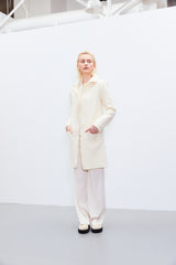 Long coat in Norwegian lambswool tweed (100% WV). Hidden pockets in front in seam.