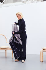 Versatile loose fitted jacket in brushed Norwegian lambswool (28 My) woven at Røros Tweed. Pattern design in collaboration with Kristine Five Melvær.